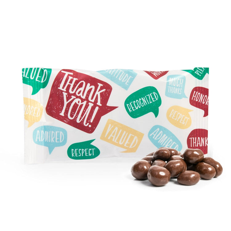 Our Thank You Chocolate Covered Raisins 1.25oz Snack Bag is a delicious and appreciative treat for your valued customers!